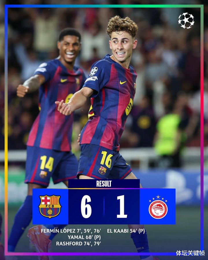 Quả đá phạt đền của Lamine Yamal khởi đầu lối chơi tấn công điên cuồng của Barcelona, ghi 4 bàn sau 12 phút. Fermin Lopez hoàn tất hat-trick và Marcus Rashford ghi hai bàn. Chung cuộc, đội 5 lần vô địch Champions League kết thúc với 6 điểm.